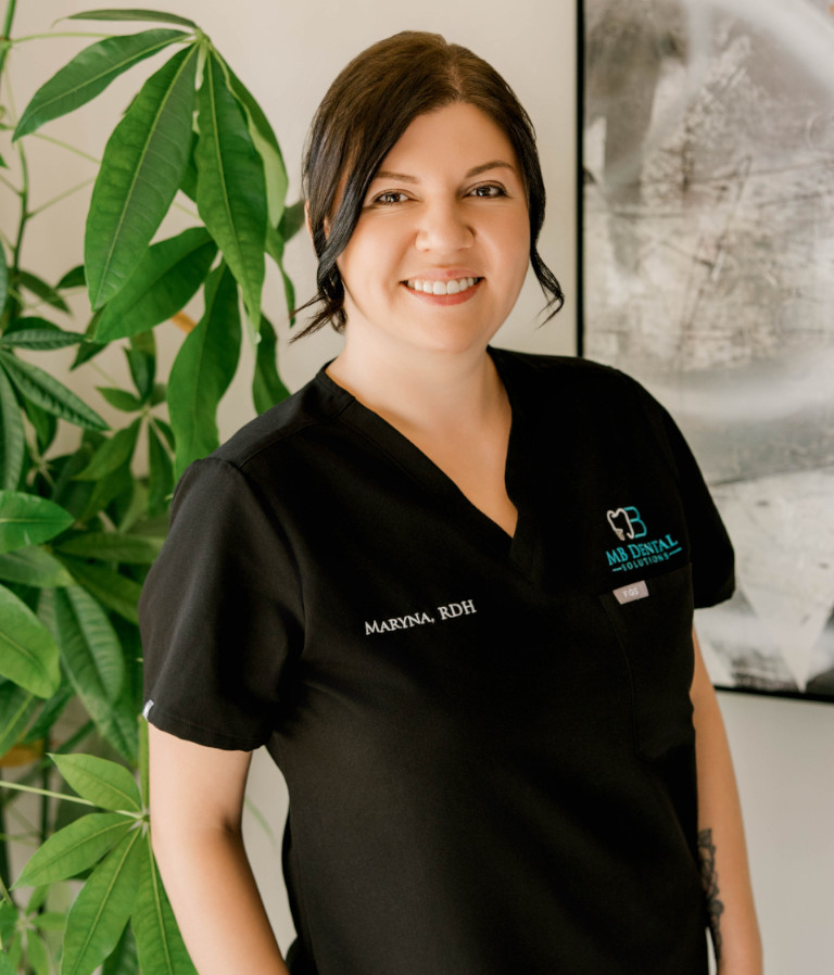 Maryna is the Lead Dental Hygienist at MB Dental Solutions, where she has been an integral part of the team since its founding. Her dental journey began in 2004 at Ternopil State University in Ukraine, where she earned her degree in general dentistry. After graduation, she worked for two years serving underserved populations while completing her dental residency. Following her move to the United States, Maryna continued to pursue her passion for oral health—first as a dental assistant and later as a licensed dental hygienist.