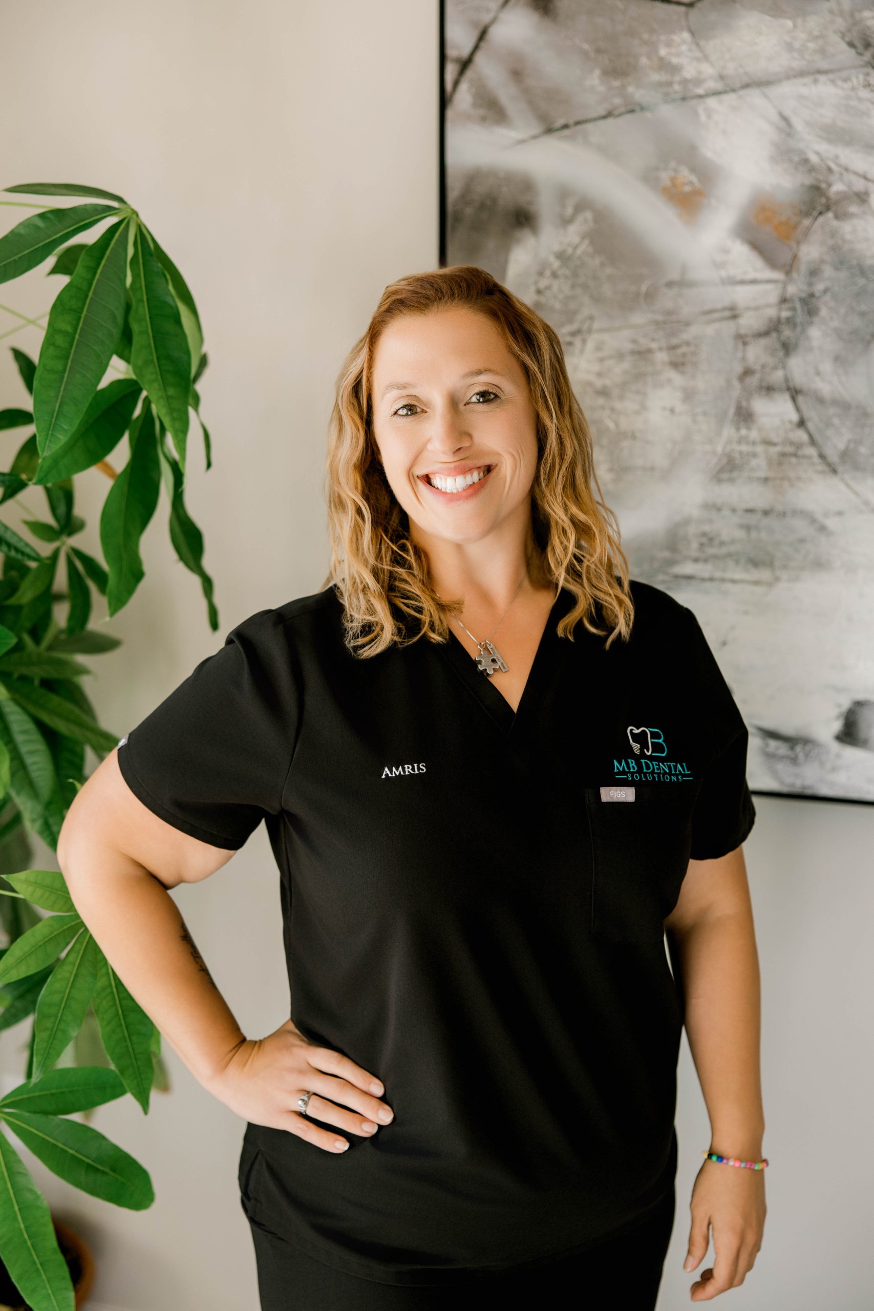 Outside of work, Amris embraces life as a proud boy mom. She enjoys walking, participating in 5Ks, creating beautiful charcuterie boards, and spending quiet moments reading. Her warm personality, dedication to patient comfort, and love for her work make her an invaluable part of the MB Dental Solutions team.